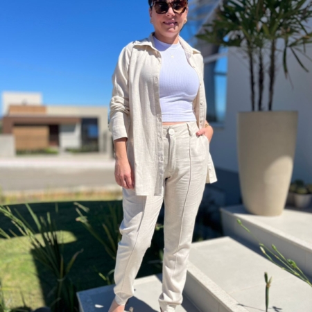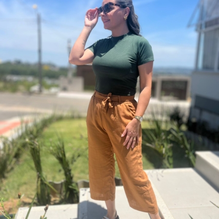 • Calça Cigarrete Linho c/ Frizo