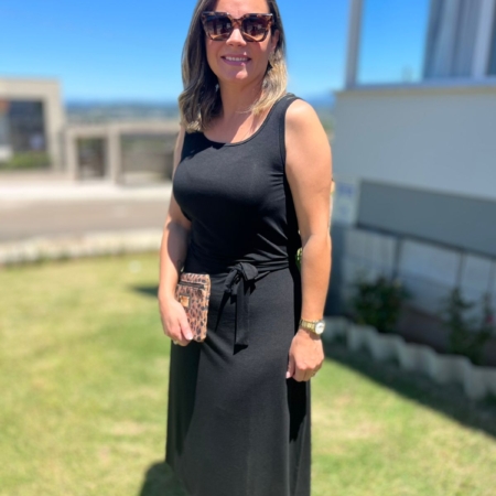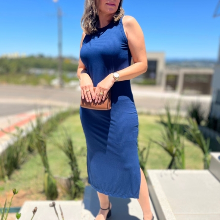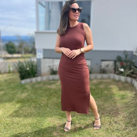 • Vestido Canelado Midi Mg 3/4 Gola Rolê