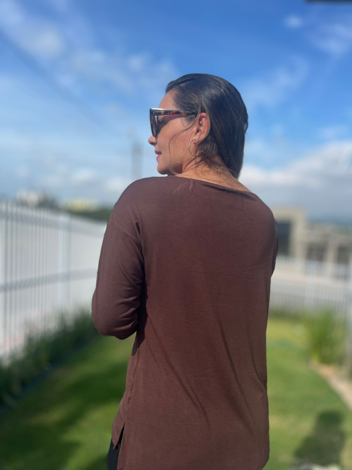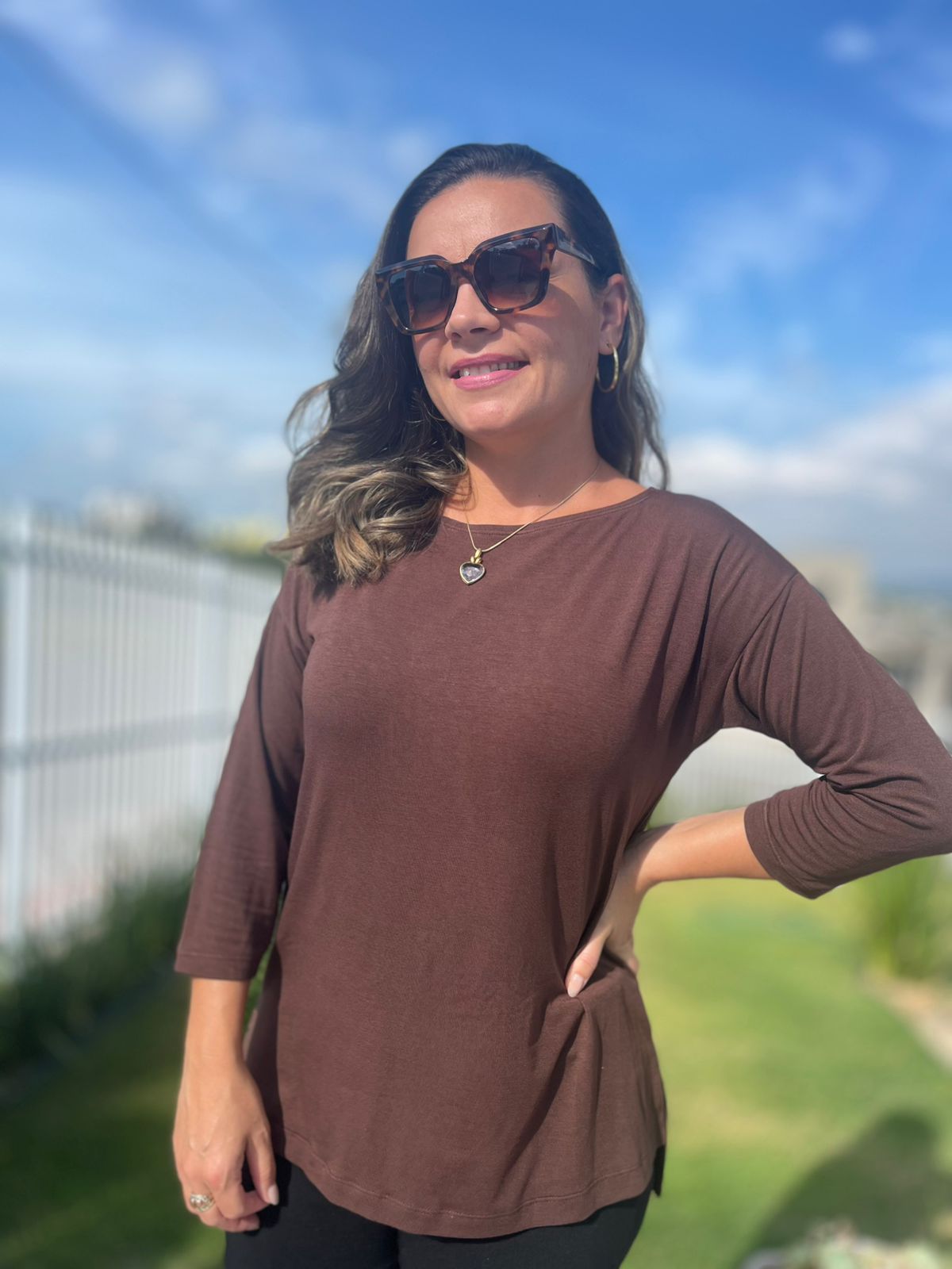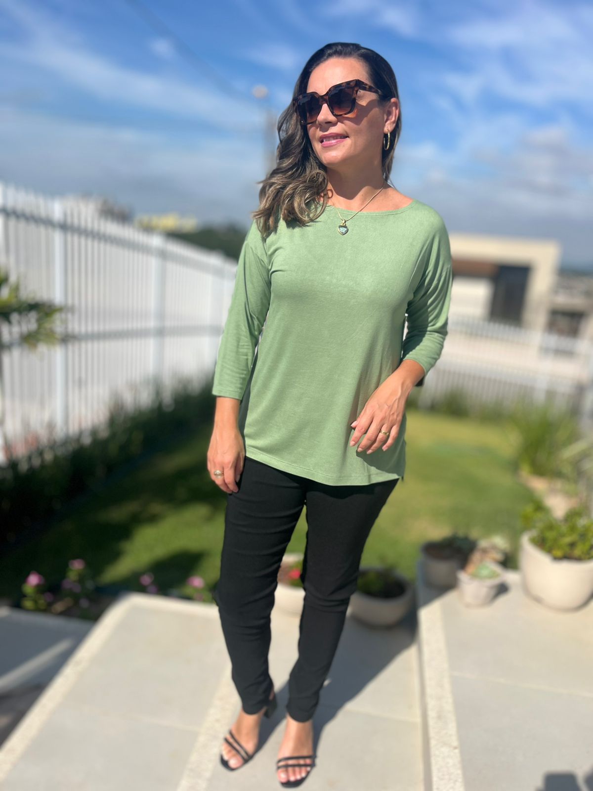 Blusa Viscolycra Alongada Decote Canoa MG 7/8 – REF 117