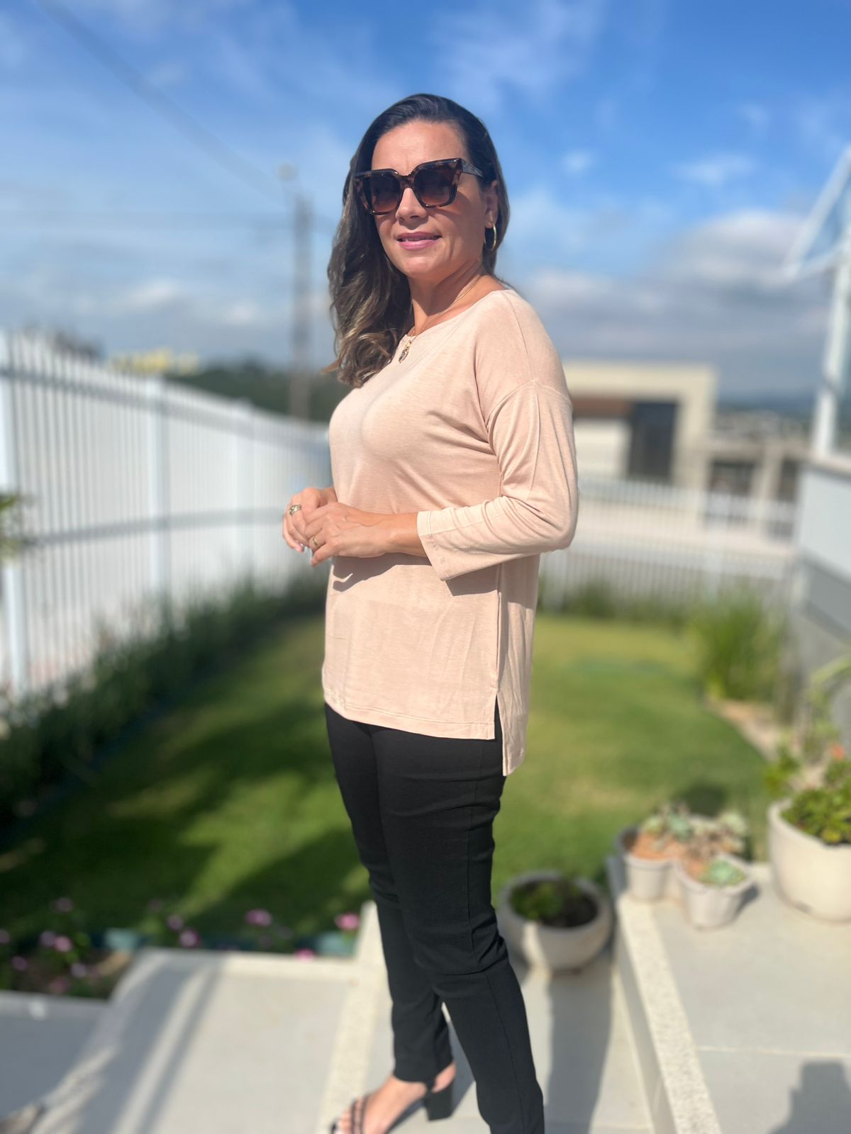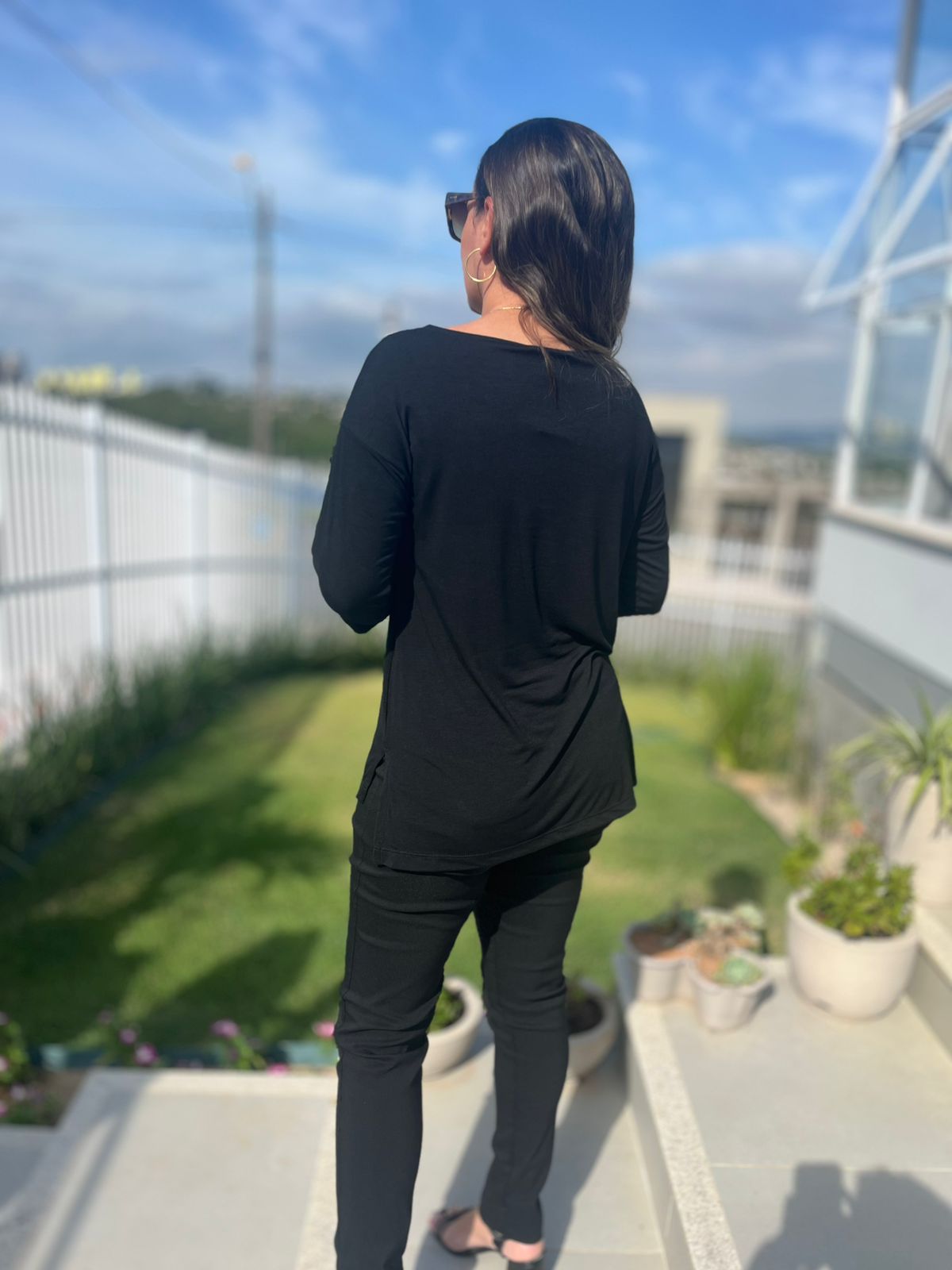 Esta blusa feminina combina o conforto da viscolycra com uma modelagem alongada e elegante, ideal para composições versáteis no dia a dia. O decote canoa valoriza o colo e ajuda a equilibrar as proporções, sendo especialmente indicado para quem deseja destacar a região dos ombros.