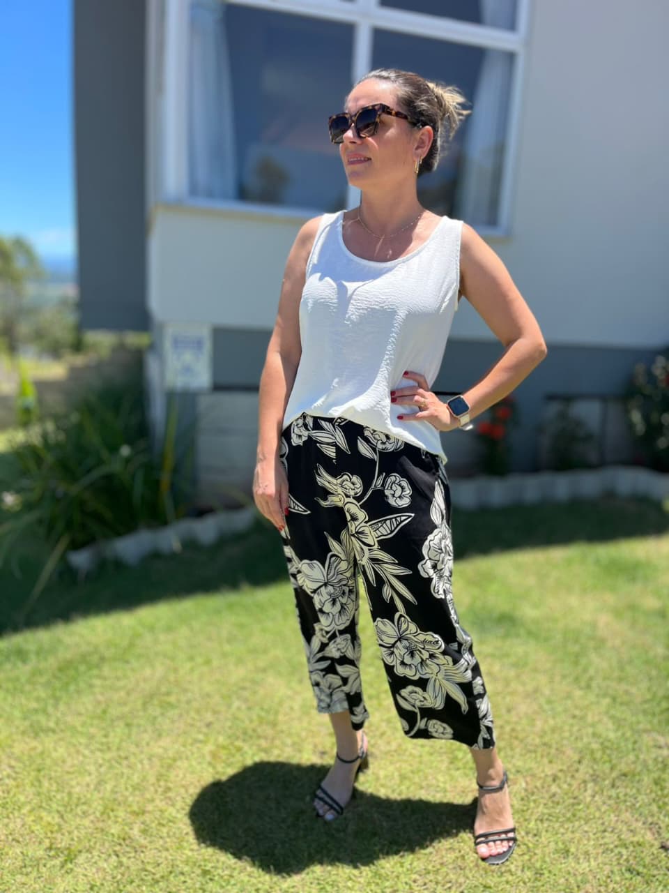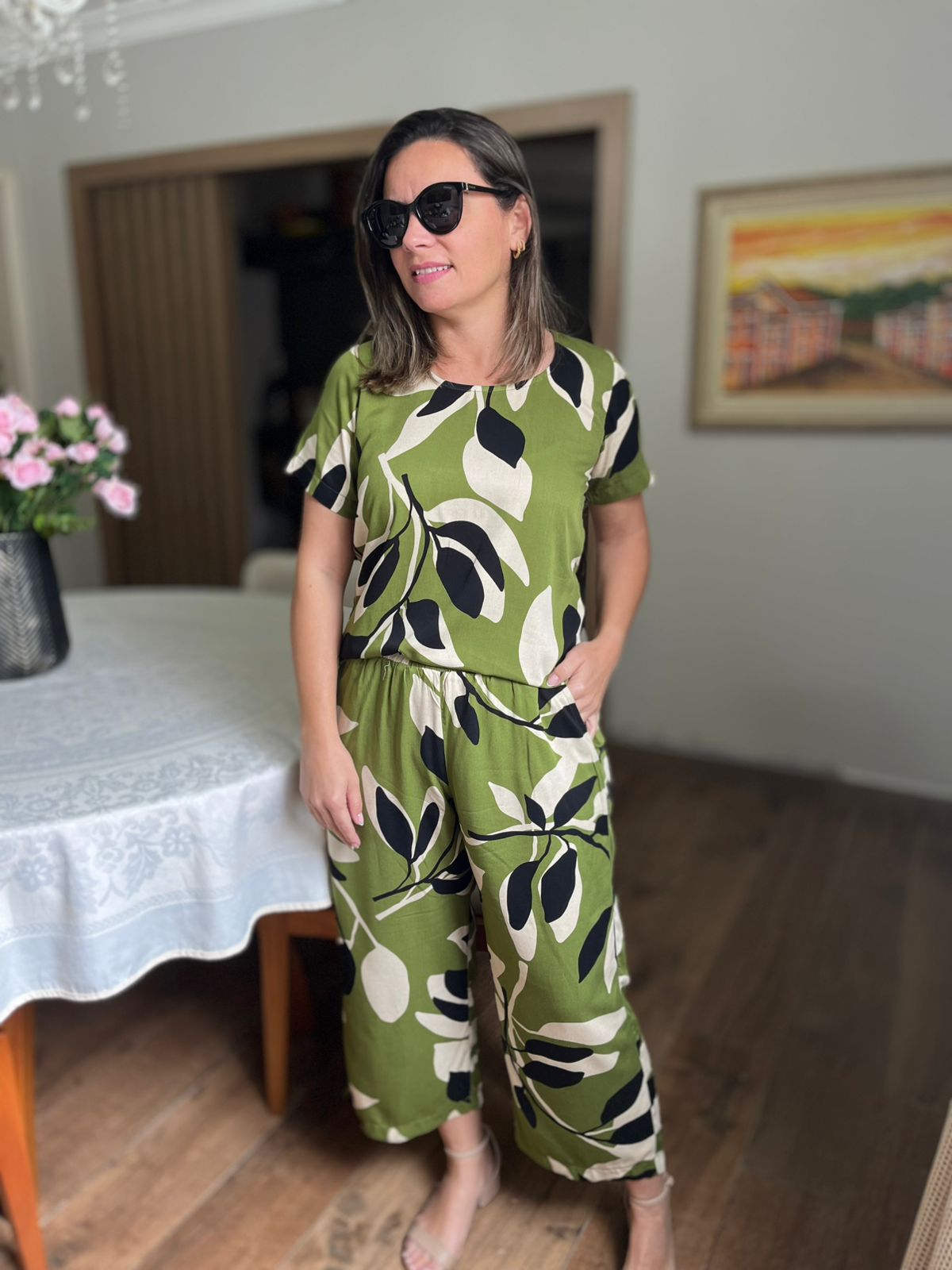 Calça pantacourt de viscose é uma peça versátil e elegante, caracterizada pelo comprimento midi (abaixo do joelho/meio da canela) e corte amplo, fluido e leve. Confeccionada em fibra de celulose, oferece toque macio, alta respirabilidade e conforto, ideal para dias quentes. Possui cintura alta, cós com elástico, e bolsos funcionais.