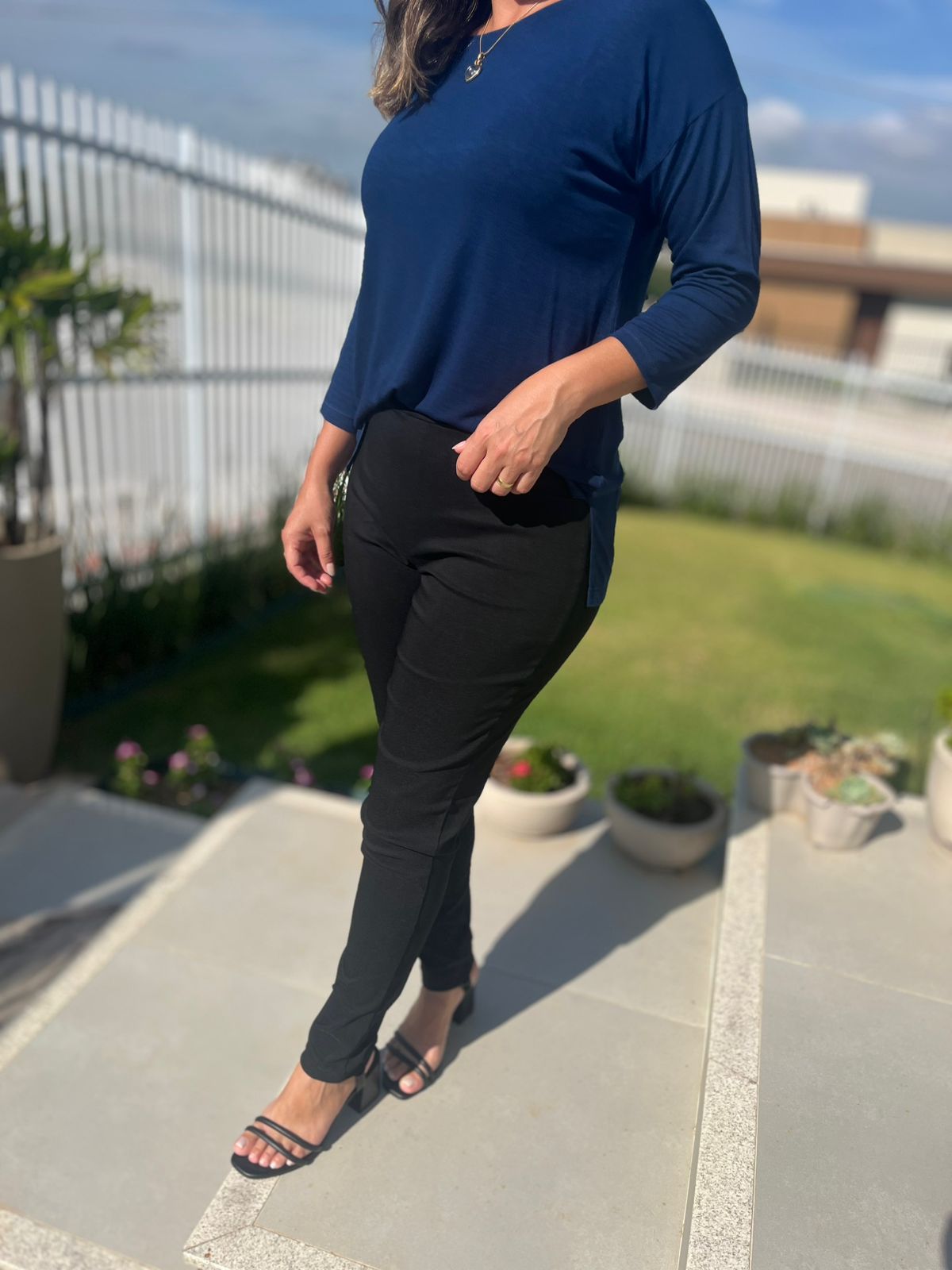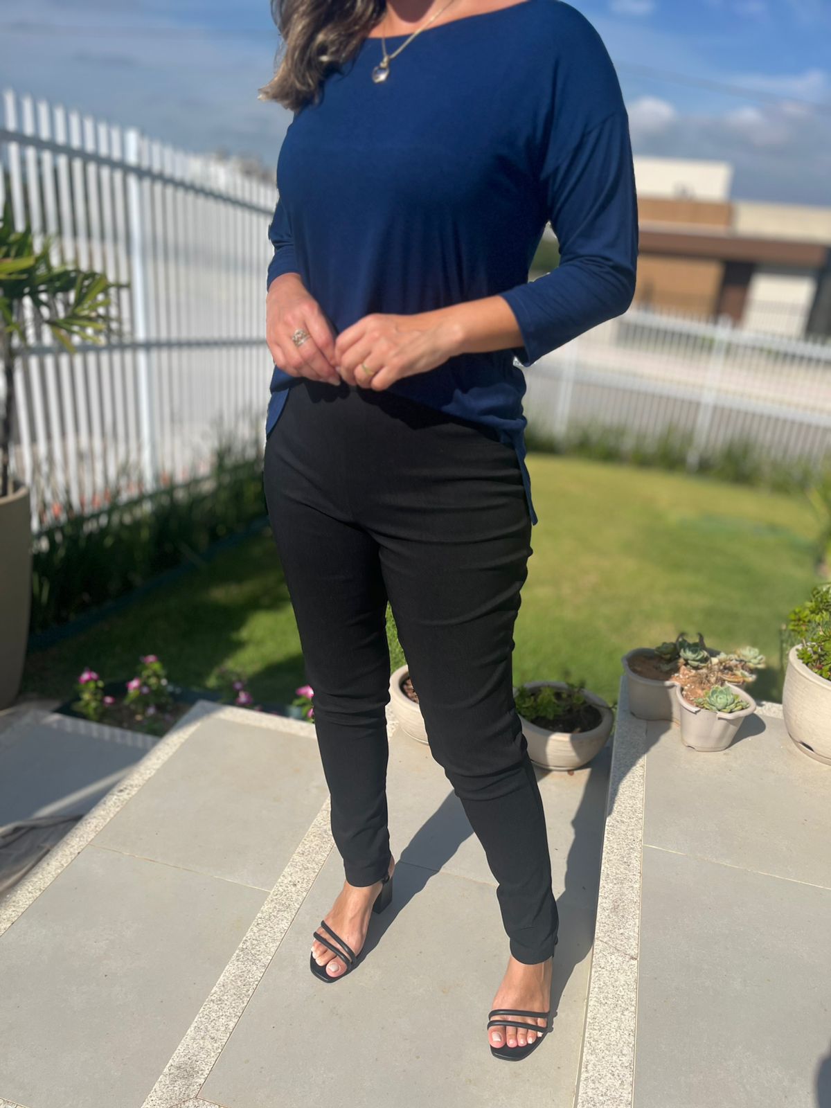 A legging em tecido bengaline é uma peça versátil que une o conforto de uma calça justa com a sofisticação de um tecido estruturado. Composto por viscose, poliamida e elastano, o bengaline oferece alta elasticidade, modela o corpo sem marcar excessivamente, é resistente e não transparente, sendo ideal para looks casuais.